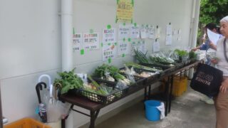 ぐるっと広場前にて個人菜園の新鮮野菜を低廉価格で提供しています。毎月、第1・3・4水曜日の10~16時。第4水曜日は東北地方の海産物や創作小物の出品もあります。